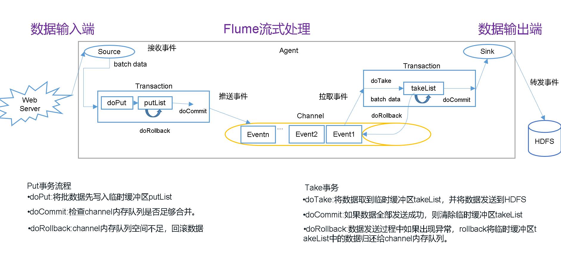 - Channel是位于Source和Sink之间的缓冲区。因此,Channel允许Source和Sink运作在不同的速率上。Channel是线程安全的,可以同时处理几个Source的写入操作和几个Sink的读取操作。